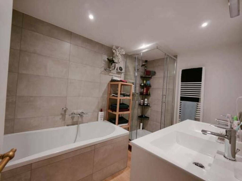 1 hall d’entrée accueillant, 1 séjour, 1 salle à manger, 1 cuisine équipée, 3 belles et grandes chambres, 1 buanderie pratique, 1 WC séparé, 1 salle de bain avec bain, douche et WC.