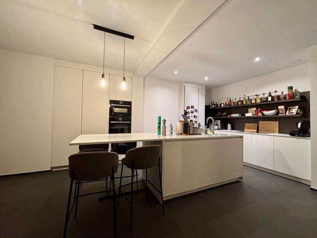 Rez-de-chaussée : Spacieux hall d'entrée WC séparé Débarras fermé, idéal pour penderie ou rangements Buanderie fermée avec accès direct au garage (1 voiture) Deux emplacements de parking extérieurs Superbe séjour baigné de lumière, avec cuisine ouverte entièrement équipée Accès direct à la terrasse et au jardin via une grande baie vitrée coulissante, offrant une parfaite continuité intérieur/extérieur