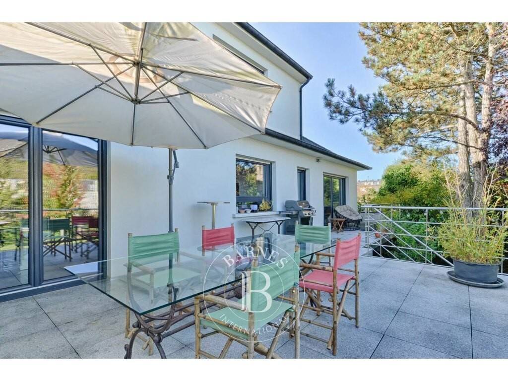 Sa surface habitable est de +/- 320 m² et se compose comme suit : D'un hall d'entrée avec placards, une vaste cuisine équipée ouverte sur une salle à manger avec un accès direct à une grande terrasse de +/- 50 m² et à un jardin clôturé, un double séjour avec cheminée donnant sur la terrasse, une chambre à coucher avec placards et un balcon, une salle de bains et un WC d'hôtes. À l'étage : un couloir avec placards, une salle de jeux, trois chambres à coucher dont une avec une mezzanine et leurs salles de douche, deux dressings et un WC séparé. Au sous-sol : Un studio aménagé avec cuisine, salle de douche avec WC, une chambre à coucher avec accès à une loggia, une cave à vin, une pièce, une buanderie et la chaufferie. Un jardin de +/- 10 ares, un garage fermé motorisé pour deux véhicules viennent compléter cette villa. Sale Details - Honoraires à la charge: Non communiqué