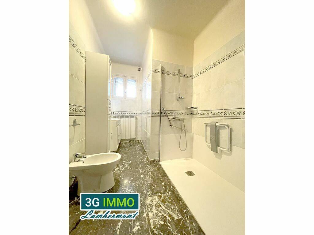 Le rez-de-chaussée surélevé, se compose d’une pièce de vie de 28m², d’une cuisine, d’une salle d’eau et d’un Wc séparé. Nous retrouvons également deux grandes chambres de 14,4m² et 16,1m². Toutes les pièces ont les plafonds à 2,6m et de larges fenêtres.