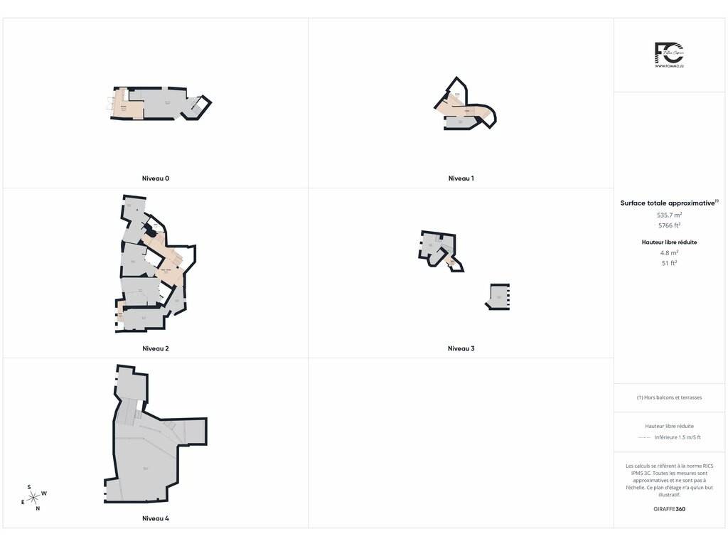 Total surface area: 535 sq.m.