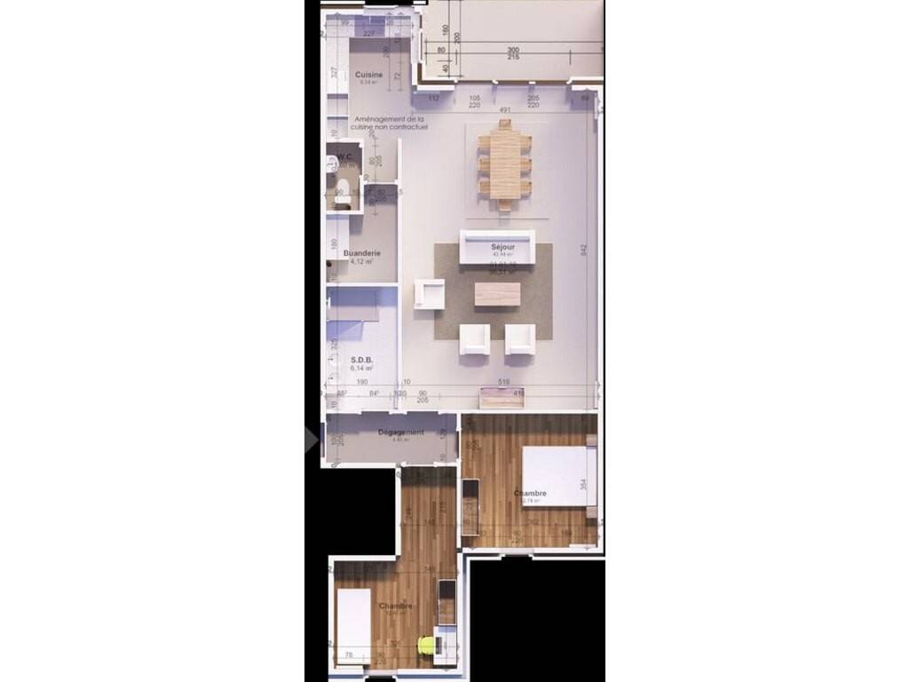 Situé au premier étage, cet appartement offre un spacieux séjour avec une cuisine ouverte, deux chambres, une salle de douche moderne, un WC indépendant et un buanderie fonctionnelle. Il dispose également d’un balcon orienté au ouest pour profiter d’un espace extérieur agréable. La vente comprend obligatoirement l’acquisition d’une cave privative et d’un emplacement de parking privatif situé au sous-sol, en supplément du prix de départ Sale Details - Honoraires à la charge: Non communiqué