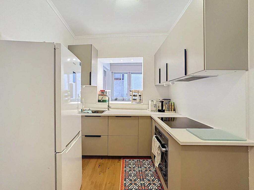 The apartment is composed as follows: - Entrance hall with recently replaced and soundproofed front door, parquet flooring - Bright living/dining room with parquet floor and large built-in cupboard - Separate kitchen, completely new and equipped (2025), parquet flooring - 1 bedroom with parquet floor - Bathroom with washing machine connection and dimmable lights - Private terrace