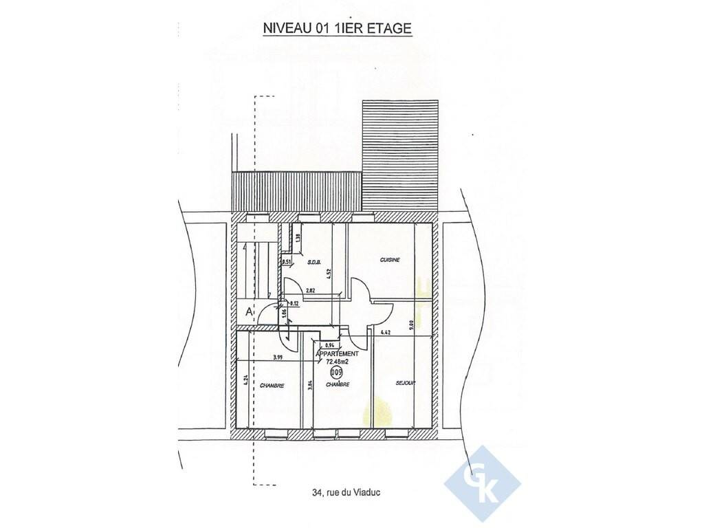 Composition de l'appartement d'une surface habitable de 72.48 m² : * hall d'entrée (3.38 m²), salon / salle à manger / cuisine de 2018 (29.96 m²), salle de douche + WC + buanderie (11 m²), chambre 1 (15.13 m²), chambre 2 (12.24 m²). * cave privative de (9.41 m²) au sous-sol * garage fermé (11.75 m²) au RDCH. * espace grenier pour stockage * jouissance d'un jardin et d'une terrasse commune.