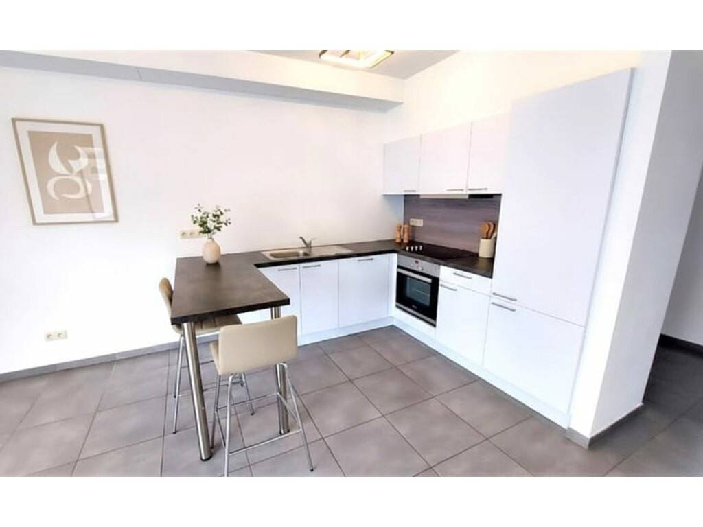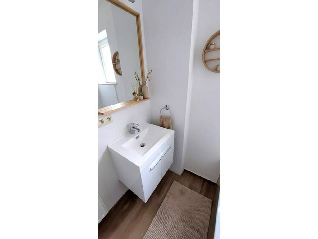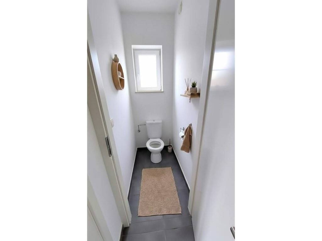 Hall d’entrée Beau séjour lumineux avec accès au jardin Cuisine ouverte équipée : four, frigo, lave-vaisselle, taques vitrocéramiques, hotte ️ 2 chambres confortables Salle de bains moderne avec une douche , un meuble lavabo, une baignoire Buanderie séparée pratique Cave privative Emplacement de parking extérieur Espace poubelles extérieur Jardin