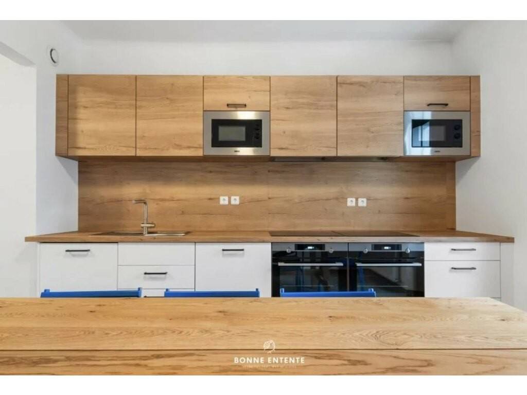 A large fitted kitchen with two fridges, two ovens, two induction hobs, two microwaves, a large table for eight people and a magnificent terrace.