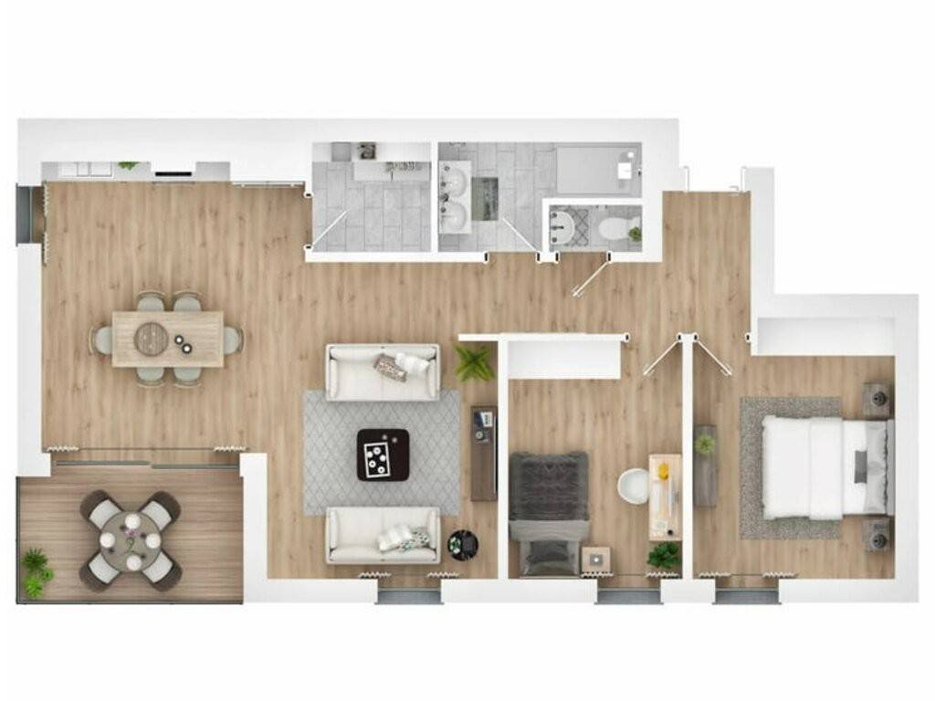 Cet appartement se trouve au rez-de-chaussée et se compose comme suit : un hall d’entrée disposant d’un WC, une cuisine équipée ouverte sur un séjour-salle à manger donnant accès à une terrasse ainsi qu’un jardin, une buanderie, 2 chambres ainsi qu’une SDD (Douche, meuble lavabo et WC). Cet appartement est lié à une cave, un garage et une place de parking (hors prix). Vous disposez d’un bien neuf de 92m² avec ascenseur, une garantie décennale, une isolation poussée et des panneaux photovoltaïques Sale Details - Honoraires à la charge: Non communiqué