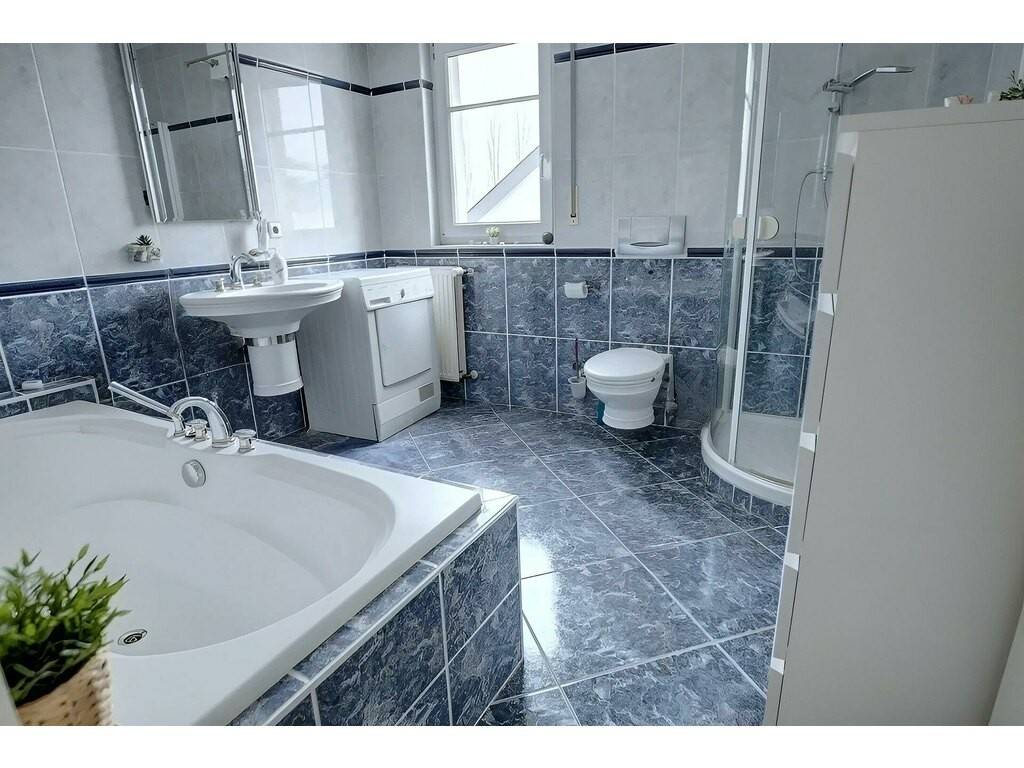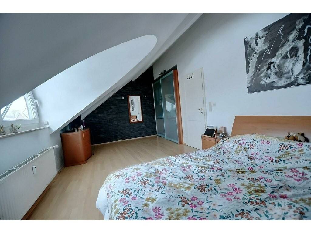 À l'étage, le grenier a été aménagé en partie habitable et représente 55,26 m² supplémentaires. Cet espace comprend une deuxième chambre à coucher ainsi qu'une salle de douche avec WC, apportant un réel confort et une belle flexibilité d'usage.