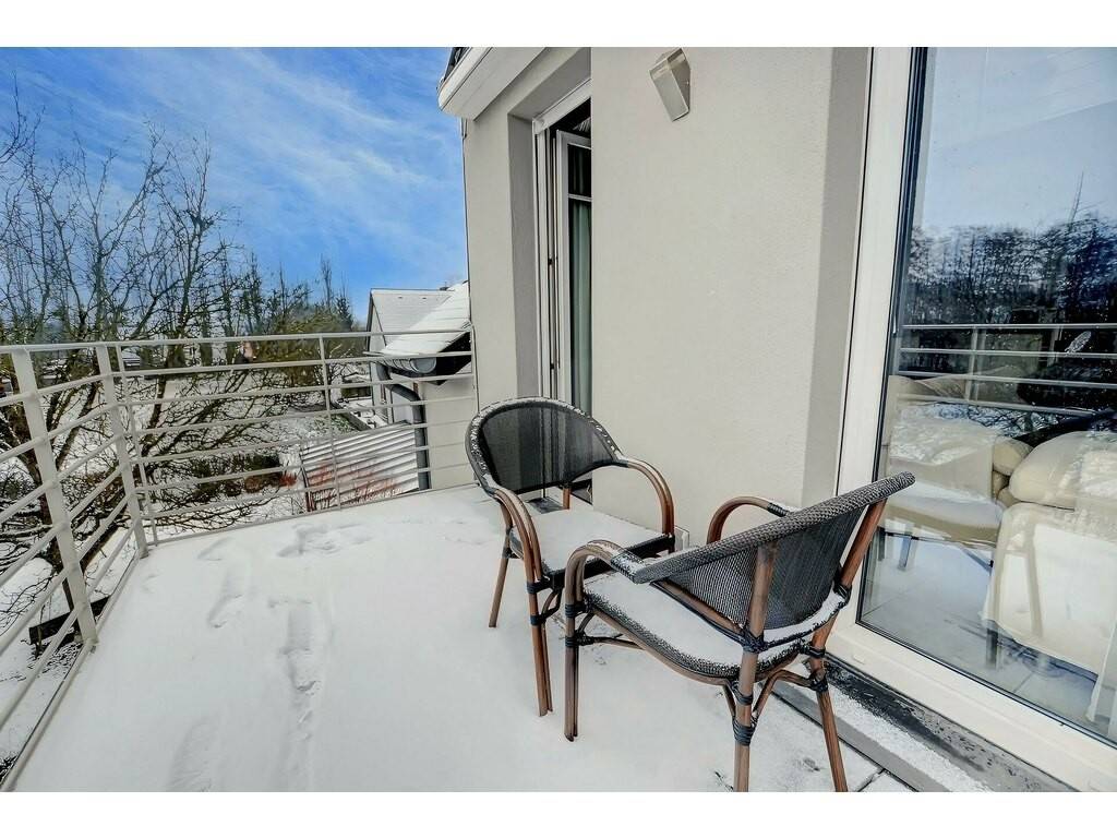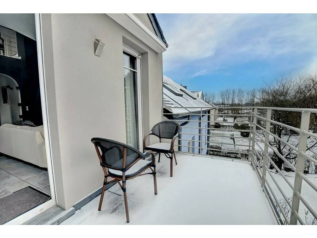 Le niveau principal, situé au 1er étage, développe une surface de 82,49 m². Vous y découvrirez une cuisine ouverte sur le living, agrémenté d'un insert, ainsi qu'un couloir distribuant la grande chambre parentale, la salle de bain et le hall d'entrée. Le living donne accès à un balcon d'environ 8 m², équipé d'une marquise électrique avec télécommande.