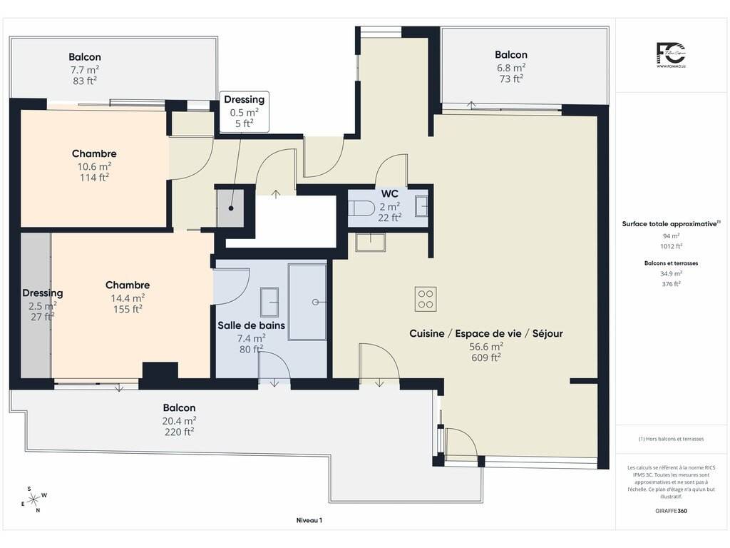 4 terrasses/balcons permettant de profiter pleinement de chaque moment en extérieur