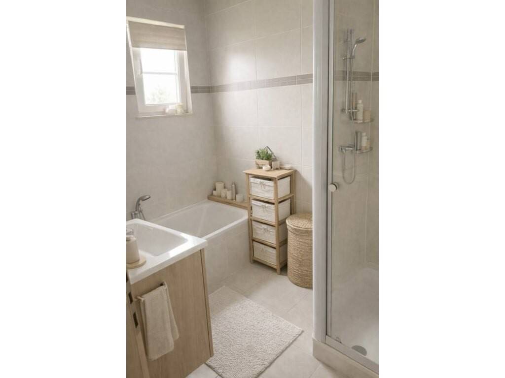 Grand séjour lumineux avec cuisine équipée ( douche, frigo, four, hotte, plaque et lave-vaisselle )️ 2 chambres confortables Salle de bains avec baignoire + douche Pratique : buanderie séparée Place de parking privative juste devant l'immeuble