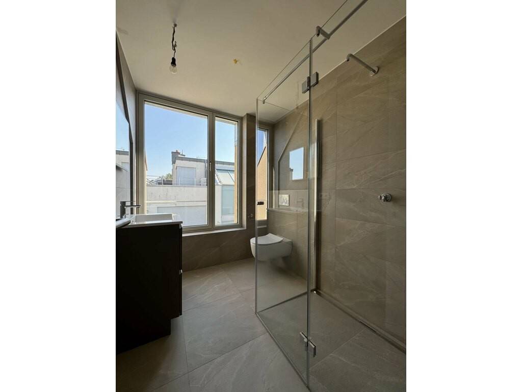 L'appartement-duplex au 2ème étage dispose d'une surface habitable de ±95m2, de grandes baies vitrées pour une luminosité absolue et se compose comme suit (arrivée avec l'ascenseur dans l'appartement) : - un hall d'entrée avec placard sur mesure, un séjour lumineux avec cuisine ouverte, trois chambres à coucher avec placards sur mesure dont une avec une salle de douche attenante, une autre salle de douche avec WC et un WC séparée.