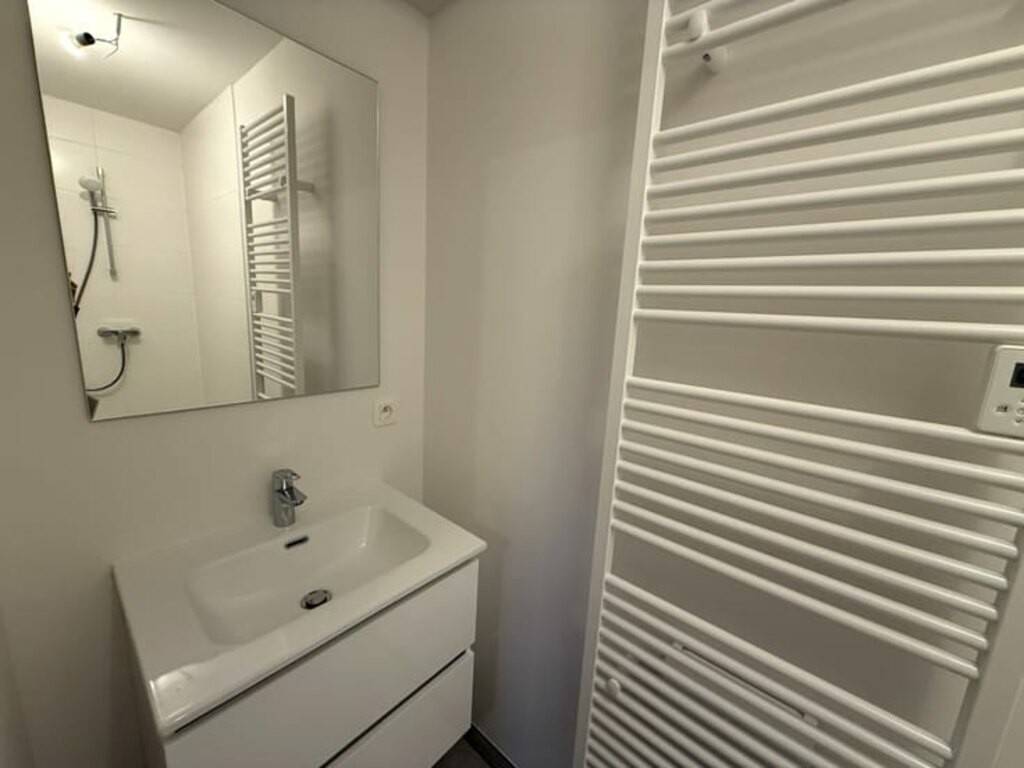 - Une salle de bains avec douche, baignoire, meuble lavabo et WC