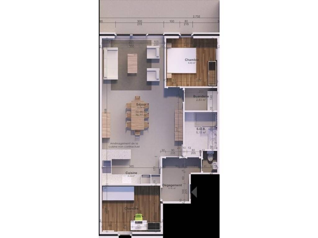 1 Situé au rez-de-chaussée, cet appartement propose un spacieux séjour avec cuisine ouverte comprenant deux chambres, une salle de douche moderne, un WC et une buanderie. Un agréable balcon orienté au nord-ouest prolonge l'espace de vie afin de profiter des beaux jours La vente comprend obligatoirement l’acquisition d’une cave privative et d’un emplacement de parking privatif situé au sous-sol, en supplément du prix de départ Sale Details - Honoraires à la charge: Non communiqué