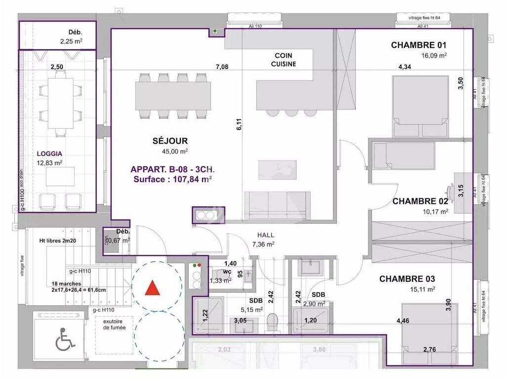 Apartment B 08 is composed as follows: Living area: 107.84 sqm Terrace: 12.83 sqm Two parking spaces