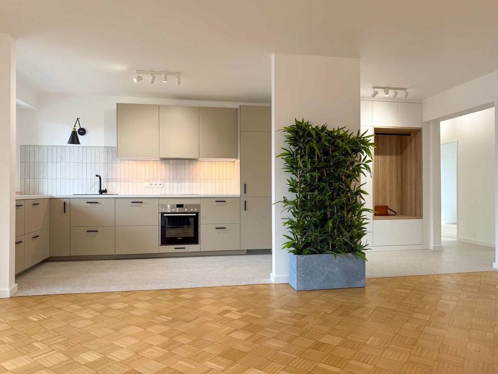 • Kitchen: brand-new, equipped with built-in lighting inside drawers, with the option to add a kitchen island between the kitchen and the living area