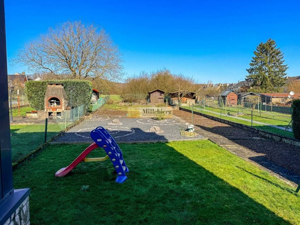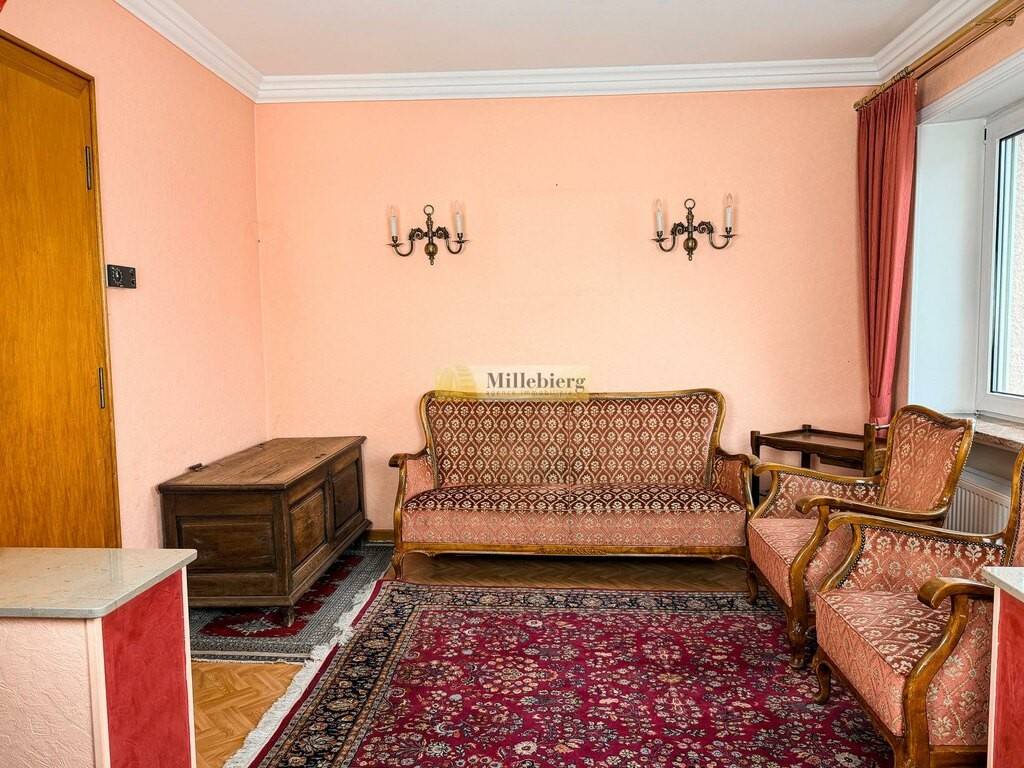 Une maison jumelée avec un grand jardin et en bon état d'habitation comprenant 3 chambres à coucher, un bureau, un grenier aménageable, une salle de douche, un séjour, une cuisine équipée avec une salle à manger en jardin d'hiver et un WC séparé. Au sous-sol la maison dispose d'un garage, d'une buanderie et des caves. Très grand et beau jardin située au calme. La maison est équipée d'une alarme. La chaudière à gaz date de 2019.