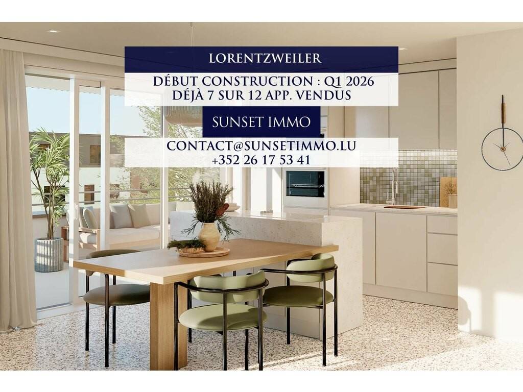 Sunset Immo is pleased to present this beautiful 3-bedroom apartment, located on the ground floor of a new and contemporary residence comprising 12 apartments, ideally situated in the heart of Lorentzweiler.