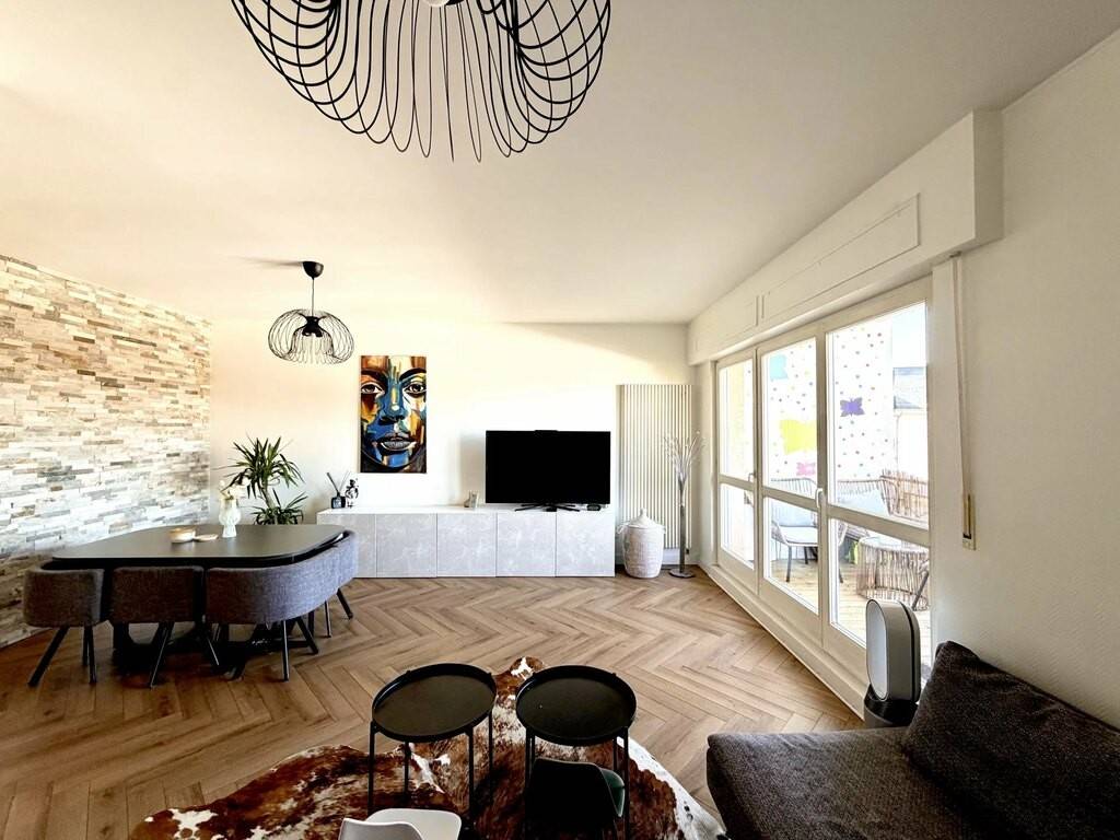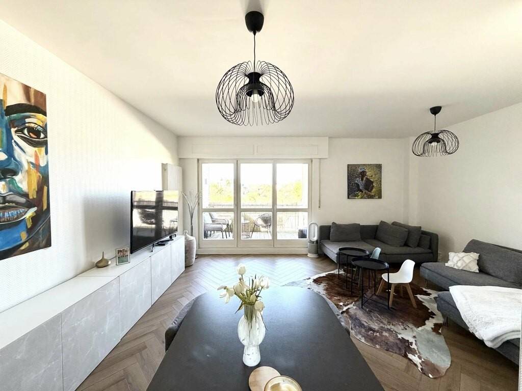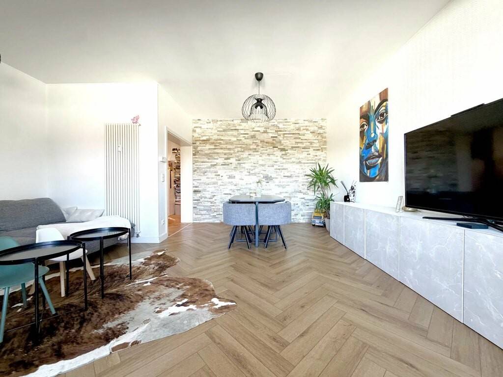 - Entrance hall with office area - A large, bright living room with balcony - Fully equipped kitchen - 17.5 m² first bedroom - Second bedroom 13 m² - Bathroom with washbasin and toilet - Private cellar - Laundry room - Exterior parking space