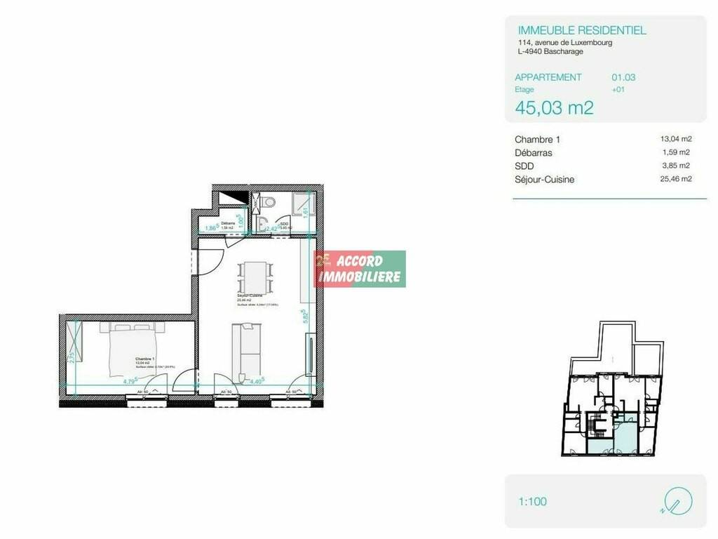 Il ne reste que 4 unités disponibles dans cette résidence prête à vivre. Ne laissez pas passer votre chance et contactez-nous dès maintenant par téléphone au 26 58 01 75-1 ou par e-mail à l'adresse info@accord-immo.lu