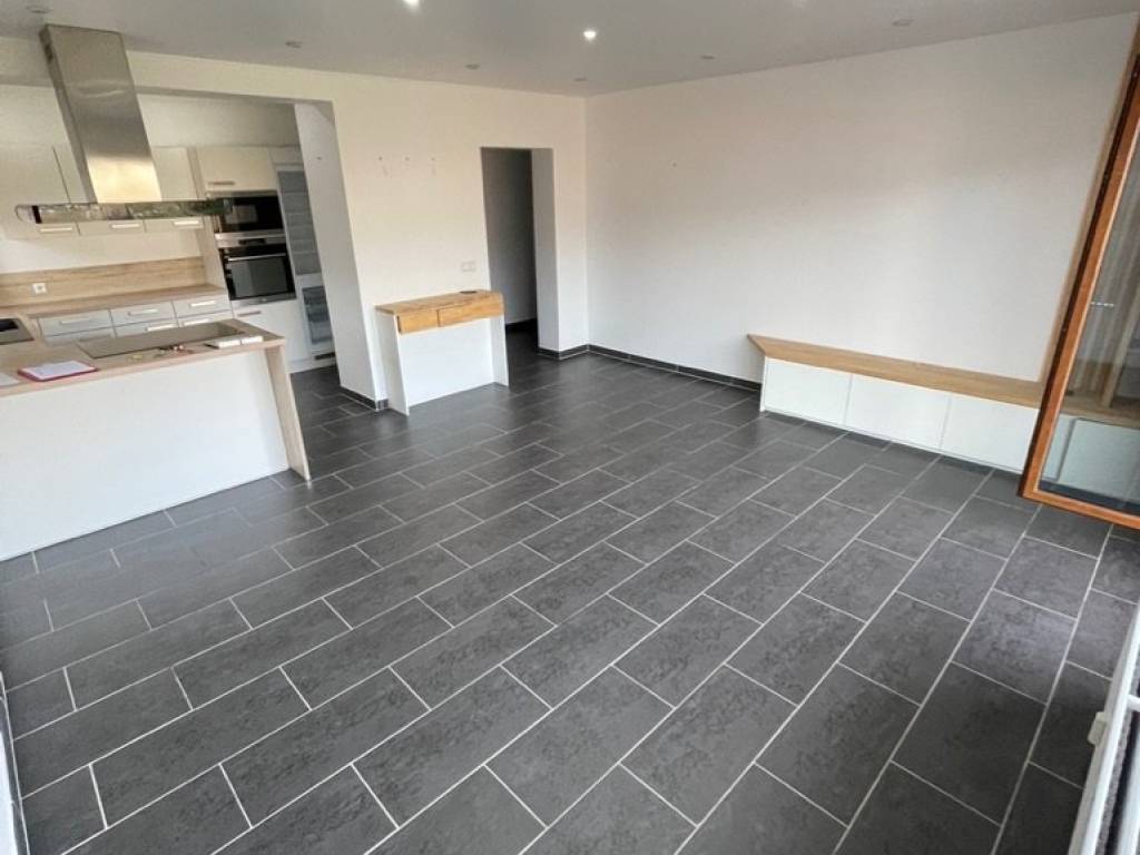 Immofox agency offers: An apartment comprising an entrance hall, two bedrooms, a fitted kitchen opening onto the living room with access to a large terrace, a shower room with WC, two small cellars, and a closed garage. Agency fees: 1 month's rent + VAT. Available from May 15, 2026.