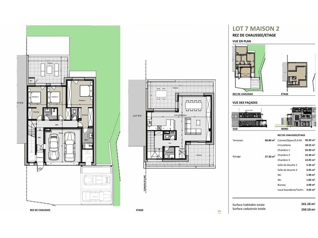 First floor: - entrance hall - mailbox - garbage can area - garage - laundry and technical room - two attractive bedrooms (13.95 m² and 15.30 m²) - shower room - separate toilet - a 23.90 m² master suite (with dressing room) with private shower room (with WC) and access to terrace... unobstructed view!