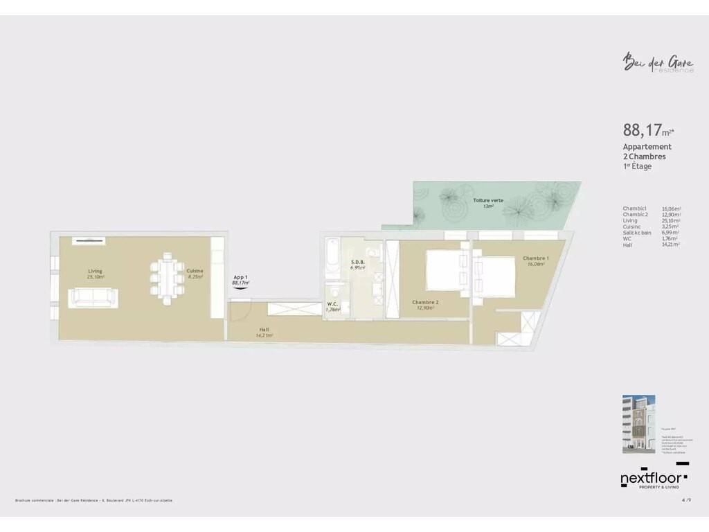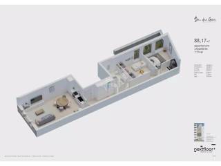 Apartment 01 has a surface area of 88 m2 and is composed as follows: