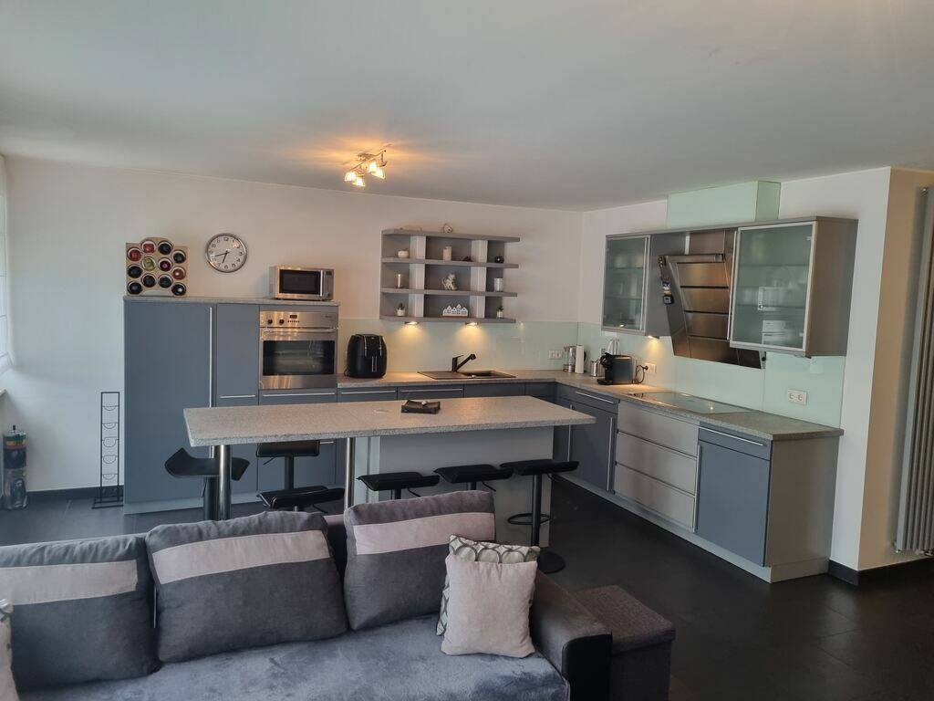Cuisine équipée ouverte sur un living spacieux et lumineux