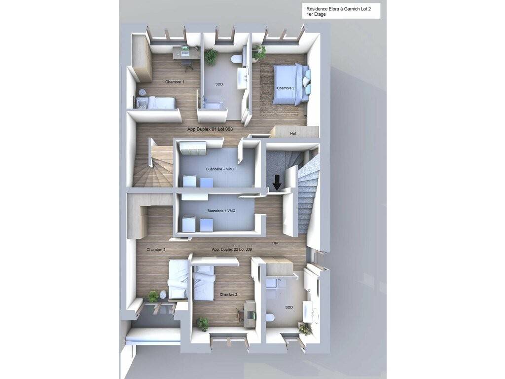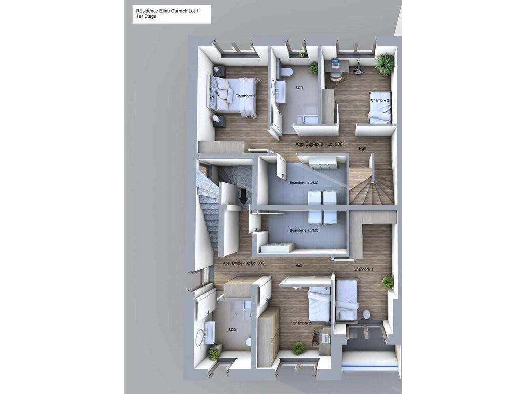 On the ground floor, you also benefit from an indoor parking space (Lot 004) and an outdoor parking space (Lot 005).