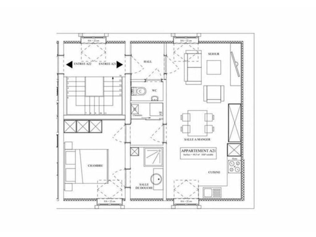 L’appartement dispose également d’une chambre spacieuse, d’une salle de douche moderne, d’un WC séparé et d’une buanderie. Une cave privative ainsi qu’un emplacement de parking sont inclus.