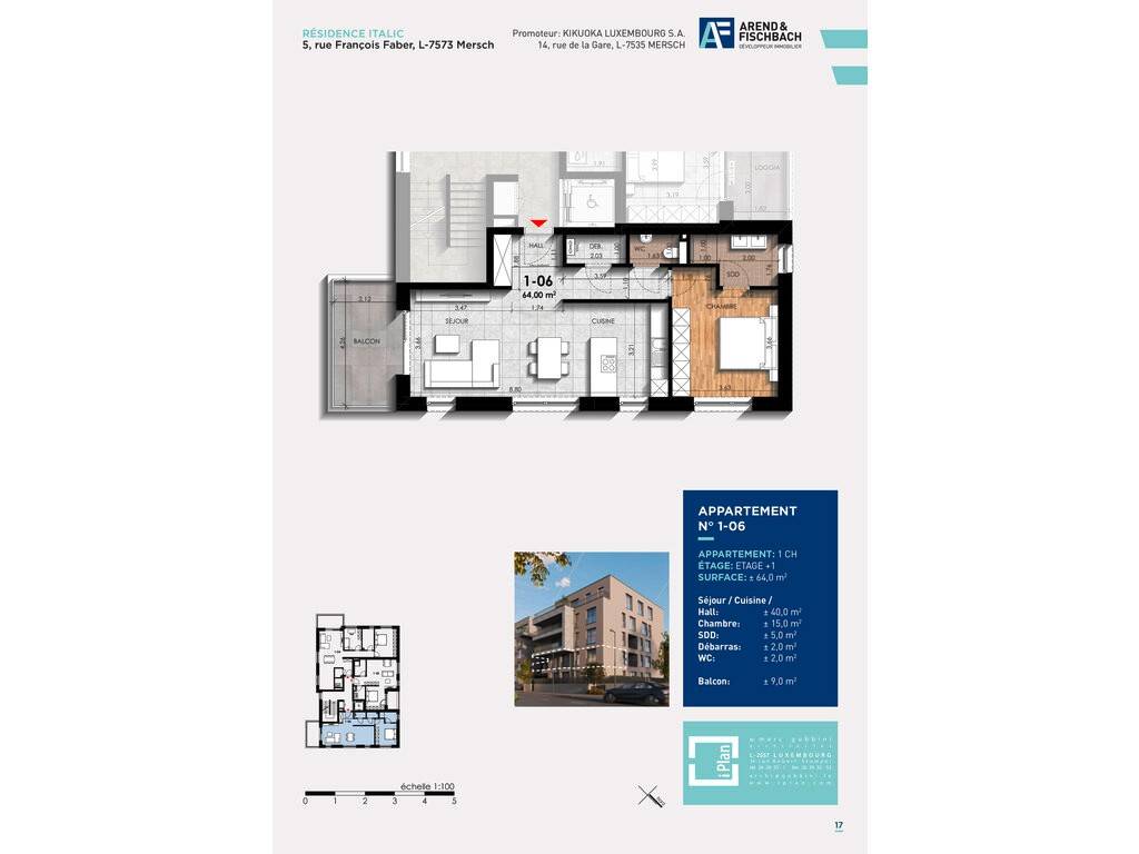 1-bedroom flat new, first floor, Mersch Localité, Mersch