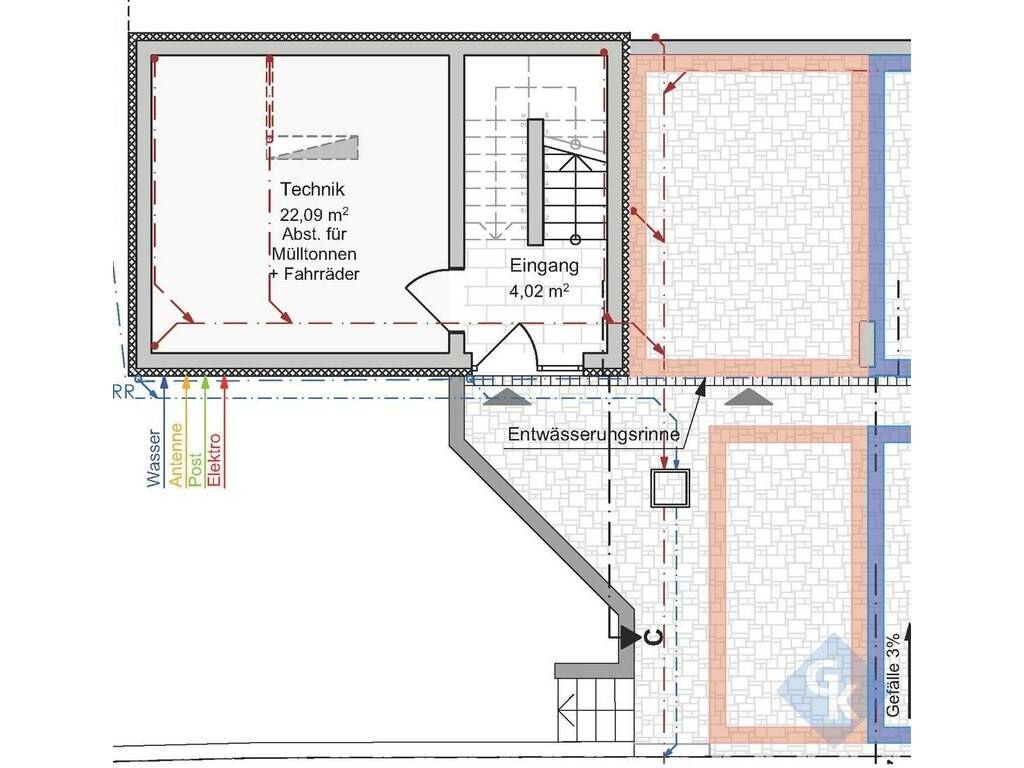 - rez-de-chaussée : hall d'entrée commun - local technique commun