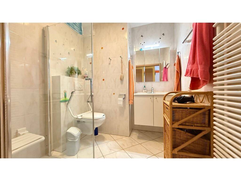 BEL APPARTEMENT au 2e étage d'une résidence pour personnes âgées (>55 ans) , se composant comme suit : hall d'entrée avec placards encastrés, cuisine entièrement équipée ouverte sur le living avec accès sur balcon de 3,90 m2, une chambre à coucher, salle de douche avec WC.
