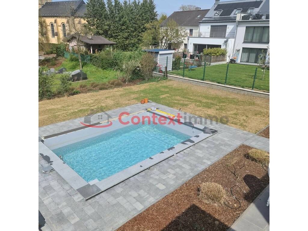 New house to discover exclusively at Context Immo. Located in a quiet, traffic-free cul-de-sac, this four-sided house sits on a 10.44-acre plot with swimming pool, and offers spacious accommodation and an ideal living environment for a family looking for space and tranquility. The house is composed as follows: First floor: 6.35 m² entrance hall 16.85 m² open-plan kitchen Bright 33.17 m² living room Large 60 m² covered terrace with equipped outdoor kitchen 4 m² storeroom 2.89 m² separate WC 13.52 m² laundry room Store room 1.93 m² 28.75 m² garage 9.52 m² workshop Second floor: 15.79 m² bedroom 16.98 m² bedroom 19.20 m² bedroom 13.22 m² bathroom with shower, WC and double washbasin 41 m² terrace Second floor: 15.22 m² night hall 13.03 m² bedroom 10.36 m² bedroom The house features modern equipment such as underfloor heating, a heat pump, controlled mechanical ventilation (CMV) and triple-glazed windows, guaranteeing excellent comfort and energy efficiency. Thanks to its large plot, swimming pool and outdoor spaces, this property offers a pleasant, quiet living environment, while remaining close to all amenities. For more information or to arrange a viewing, please contact your Holter Thomas estate agent on +352 661 182 196. Sale Details - Agency fees at the expense: Not communicated - Thermal protection class: B