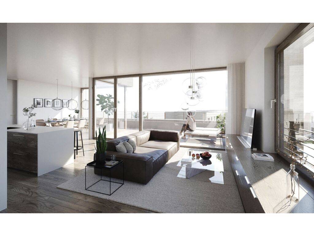 - An open-plan kitchen opening onto the bright living room with a 26m² terrace.
