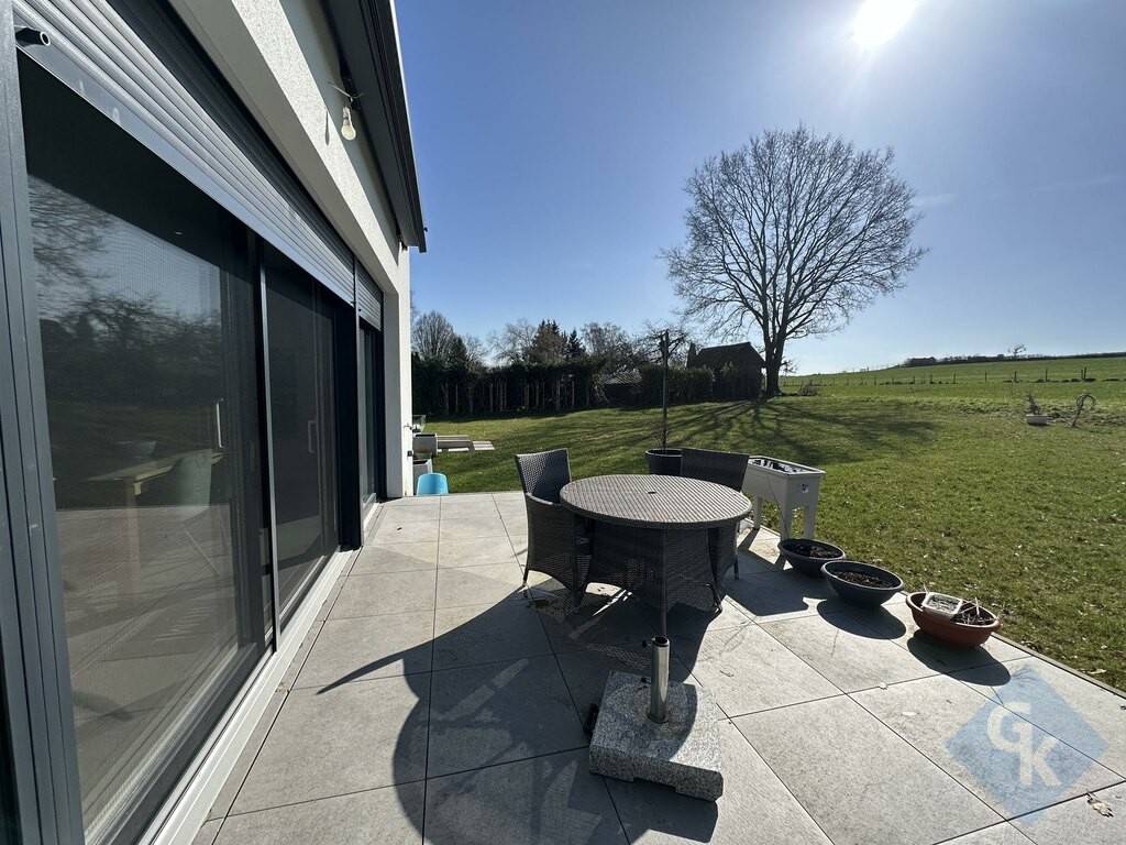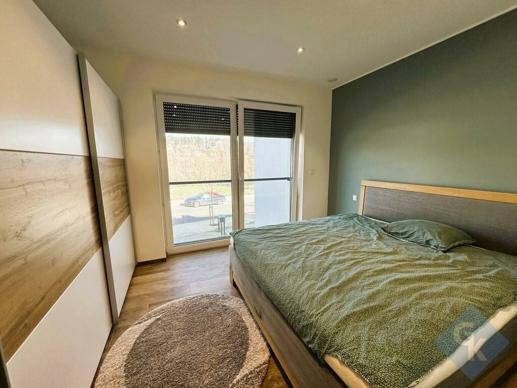 Nouvel appartement (2024) en état neuf à 2 chambres à coucher avec un jardin privatif de 135.88 m² et une terrasse de 24 m² orientés plein sud (dans une petite Résidence à 2 unités); architecture moderne et toiture plate; grand living/salle à manger/cuisine ouverte avec une vue sur la verdure; un emplacement extérieur + 2 empl. intérieurs + grande cave de 7.69 m² compris dans le prix; situation très calme proche de toutes les commodités diverses de la vie courante. Libre pour fin juin 2026. Autres atouts: pompe à chaleur; chauffage au sol; triple vitrage; volets roulants électriques; CPE: A A ; marquise terrasse; charges mensuelles réduites de +- EUR 145.-. etc ...