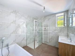 L’espace nuit, quant à lui, offre deux chambres élégantes aux volumes confortables, dont une disposant d’un dressing sur mesure parfaitement intégré, ainsi qu’une salle de bain moderne particulièrement bien pensée, équipée à la fois d’une douche et d’une baignoire, complétée par un meuble double vasques haut de gamme qui apporte une touche supplémentaire de raffinement et de praticité au quotidien, tandis que les WC séparés avec lave-mains viennent parfaire l’agencement avec cohérence et fonctionnalité.