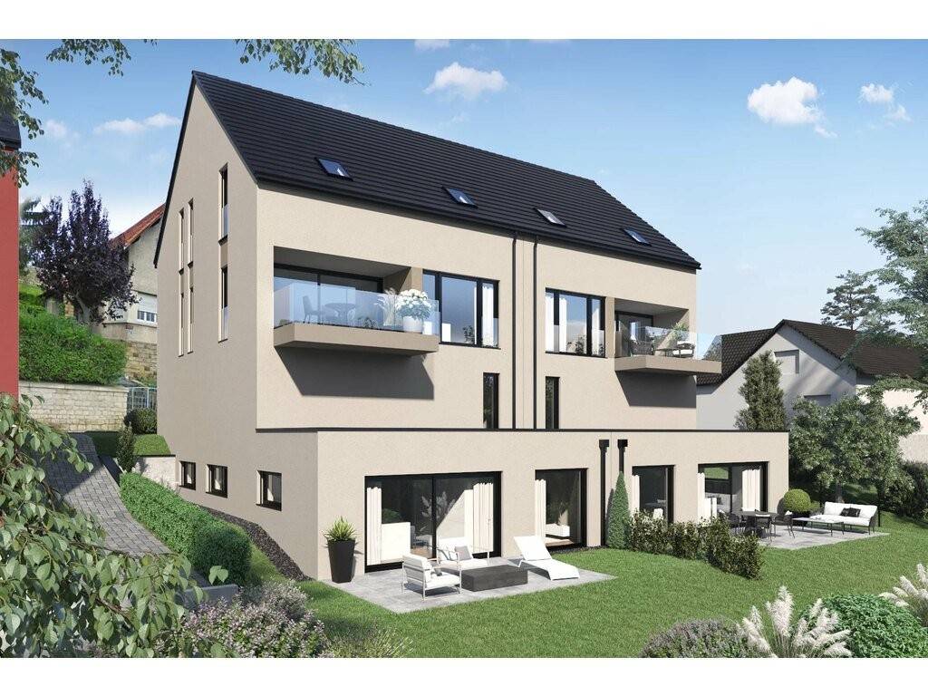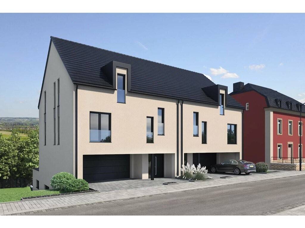 A duplex (lot A2) in a two-family house (left-hand side) to be built in NZEB (Nearly Zero Energy Building) with a terasse and with 130m2 habitable in the "Principale" street in Biwer.