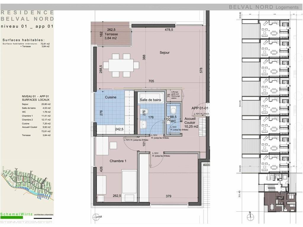 La résidence se situe dans le quartier résidentiel de BELVAL/NORD à proximité du KannerCampus et du Parc Belval Toutes les commodités de Belval/Plaza sont facilement accessible à pieds.