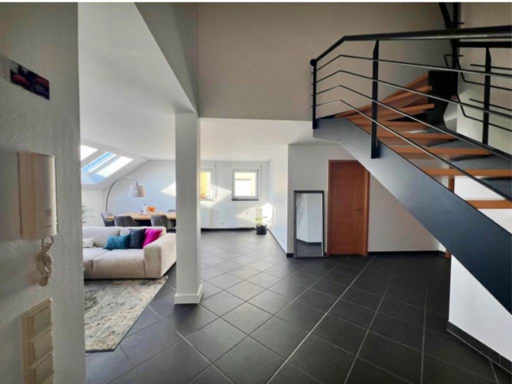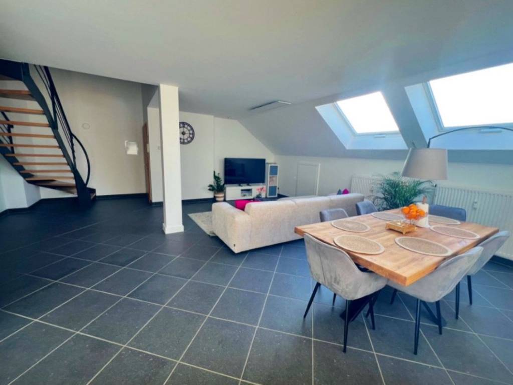Superbe DUPLEX de 128 m², situé dans une résidence, au troisième et dernier étage, bien entretenue avec ascenseur et immédiatement habitable, dans un quartier calme et recherché de Tuntange.