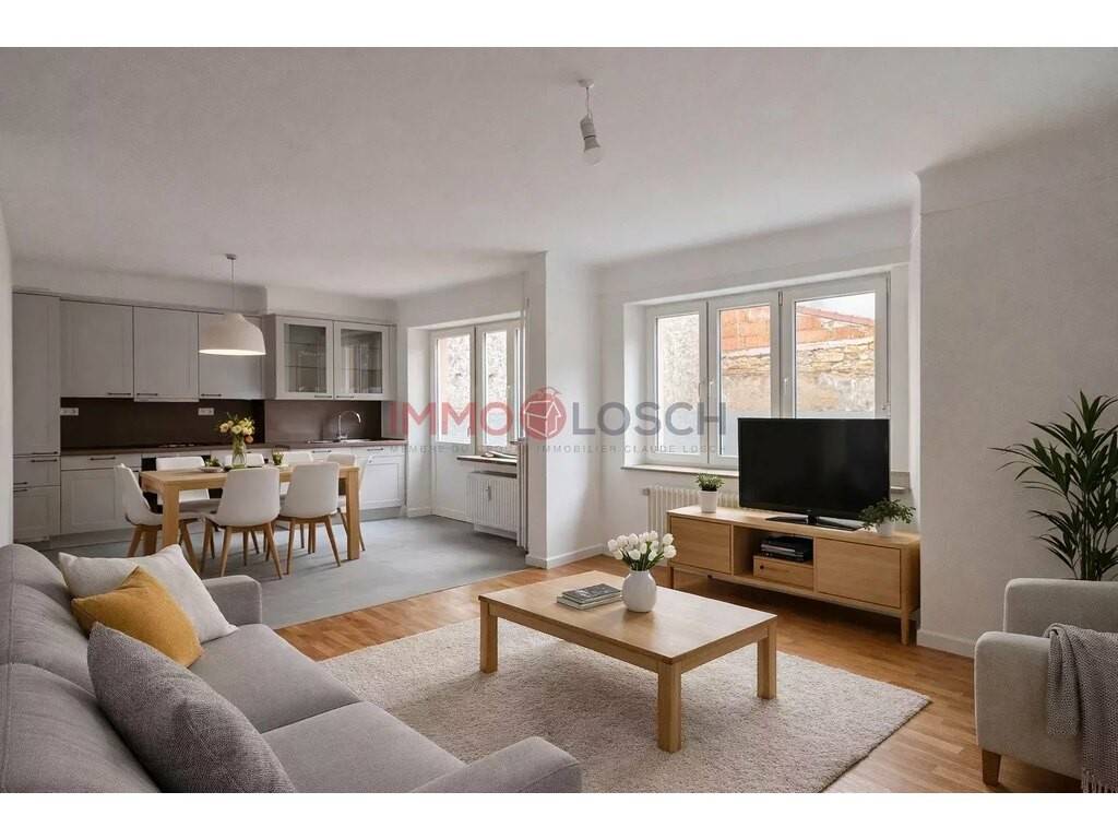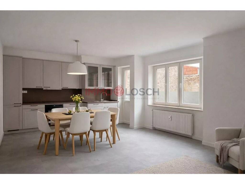 Immo Losch offers you this magnificent apartment, completely renovated in 2025, located on the first floor of a quiet, well-maintained residence in Echternach, offering an ideal living environment for a family.