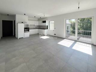 1st floor: entrance hall, living room with fitted kitchen and balcony, 2 bedrooms, bathroom, separate WC basement: indoor parking space no. 004, private cellar no. 002 and shared laundry room outside: parking space