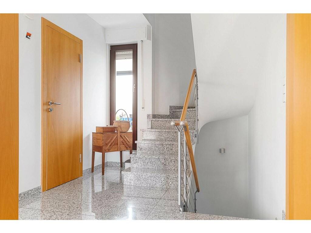 On the ground floor, the house features several practical and functional areas, including a spacious laundry room of approx. 16m² and a double garage of approx. 34m², providing comfortable parking for two vehicles as well as additional storage space. This level also offers direct access to the garden, enhancing everyday convenience.