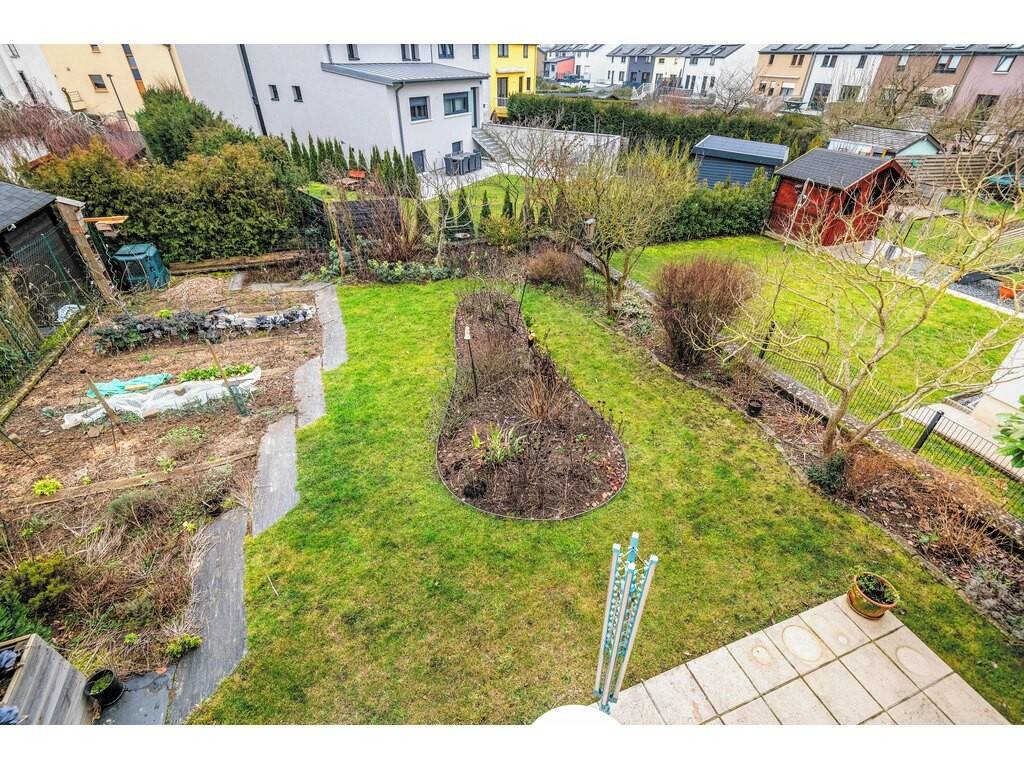 The property features a first-floor terrace, recently renovated with fully renewed waterproofing, as well as a large garden of approximately 140m². The south-east orientation ensures optimal sunlight and a pleasant living environment, both indoors and outdoors.