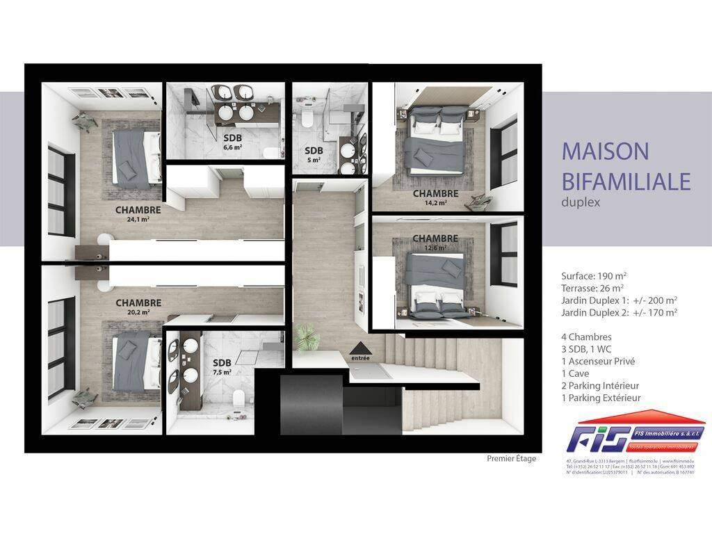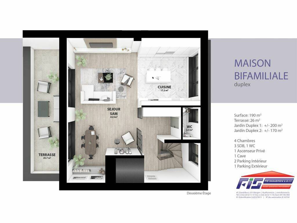 FIS Immobilière proposes to you a beautiful Apartment / Duplex with a habitable surface of 190 m2 in Hellange (commune of Frisange)