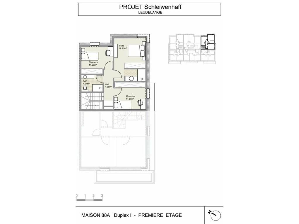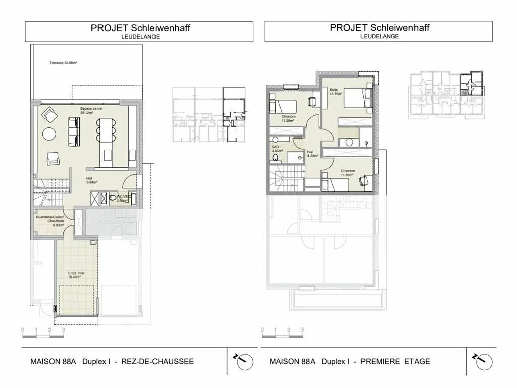 The duplex is located in Schleiwenhaff, a prime area on the outskirts of Leudelange and close to Luxembourg City and Cloche d’Or, surrounded by nature.