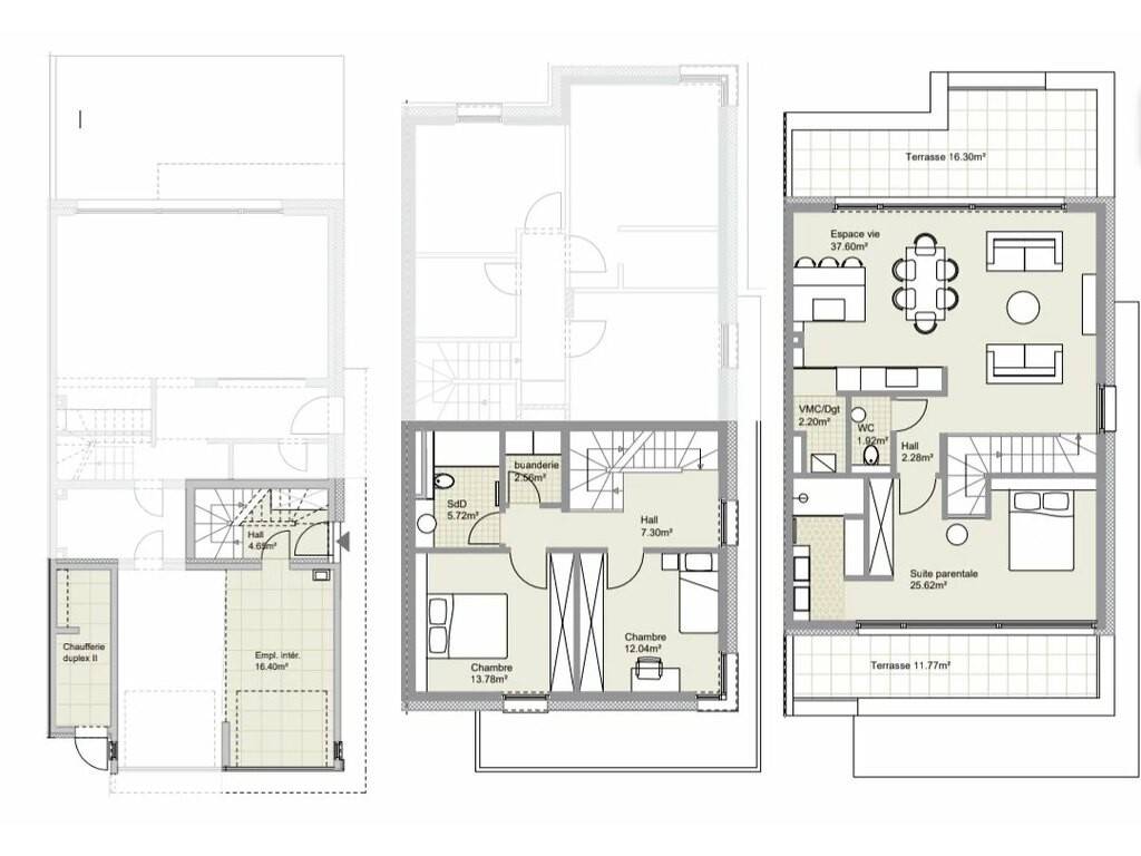 The duplex lot 88A - Duplex II is located on the ground floor, first floor and second floor; and has a cadastral area of 127.40 m², with two terraces of 11.77 m² and 16.30 m², and is composed as follows: