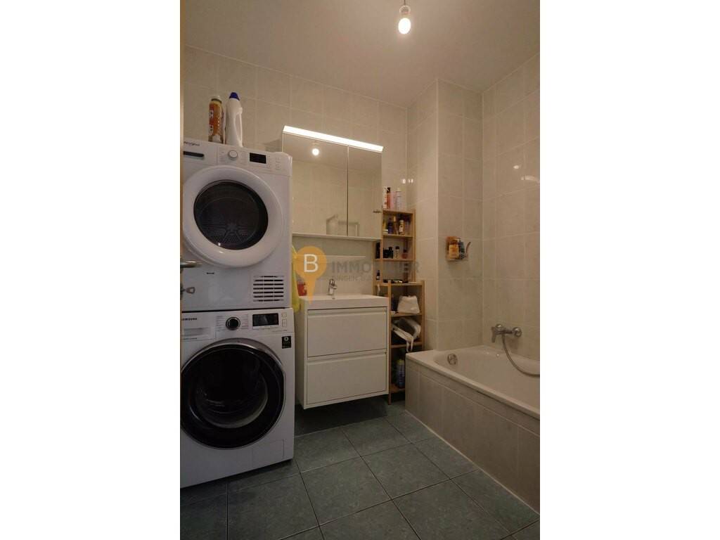 1. étage : Hall d’entrée, WC séparé, séjour avec cuisine ouverte équipée (40 m²) - réfrigérateur, congélateur, four, lave-vaisselle, plaques à inductions, débarras (0.6 m²), une salle de bains (4,3 m²) avec lavabo, baignoire & raccordement pour la machine à laver et deux chambres à coucher (12,1 m² & 16,8 m²).