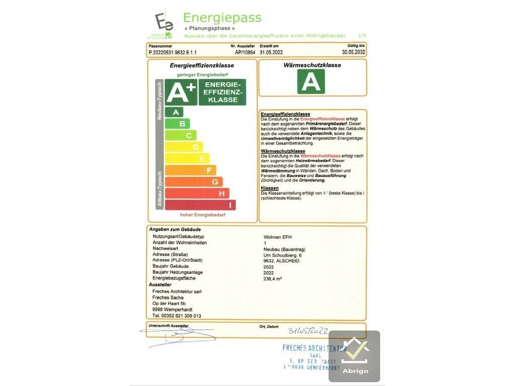Abrigo vous propose une toute nouvelle maison, libre de quatre côtés, avec terrasse et jardin, située à Alscheid (commune de Kiischpelt au nord du Luxembourg), se composant comme suit: