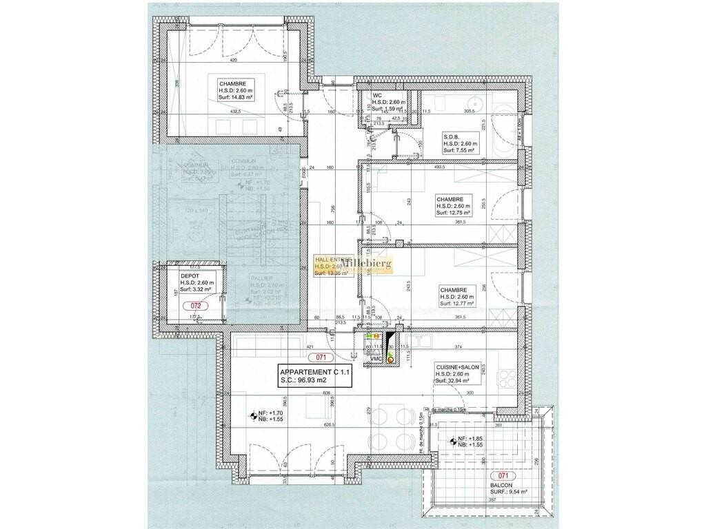 Appartement lumineux de 97 m2 dans une petite résidence à 3 unités. L'appartement de trouve au 1. étage et comprend 3 chambres, une salle de douche, un WC séparé, une cuisine équipée ouverte sur le séjour, un balcon de 15 m2, un débarras, une grande cave, et un double parking au sous-sol. Disponible à l'acte Sale Details - Honoraires à la charge: Non communiqué - Charges mensuelles: 350.00 € - Isolation thermique: B